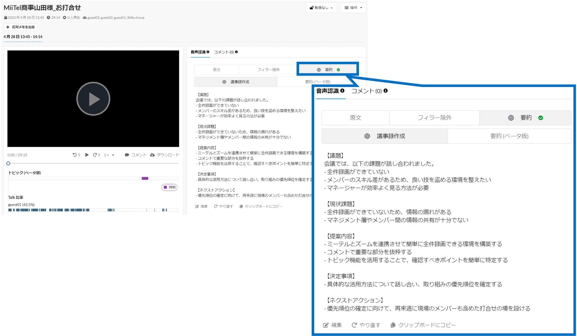 ■ChatGPTによる議事録作成機能