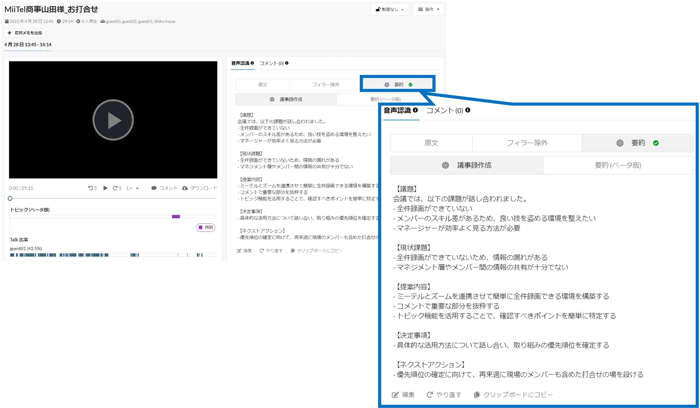 ■ChatGPTによる議事録作成機能