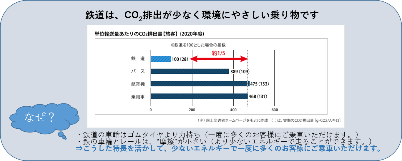 ぜひこの機会に、旅の移動手段として鉄道を選んでいただき、地球にやさしい旅をしてみませんか。