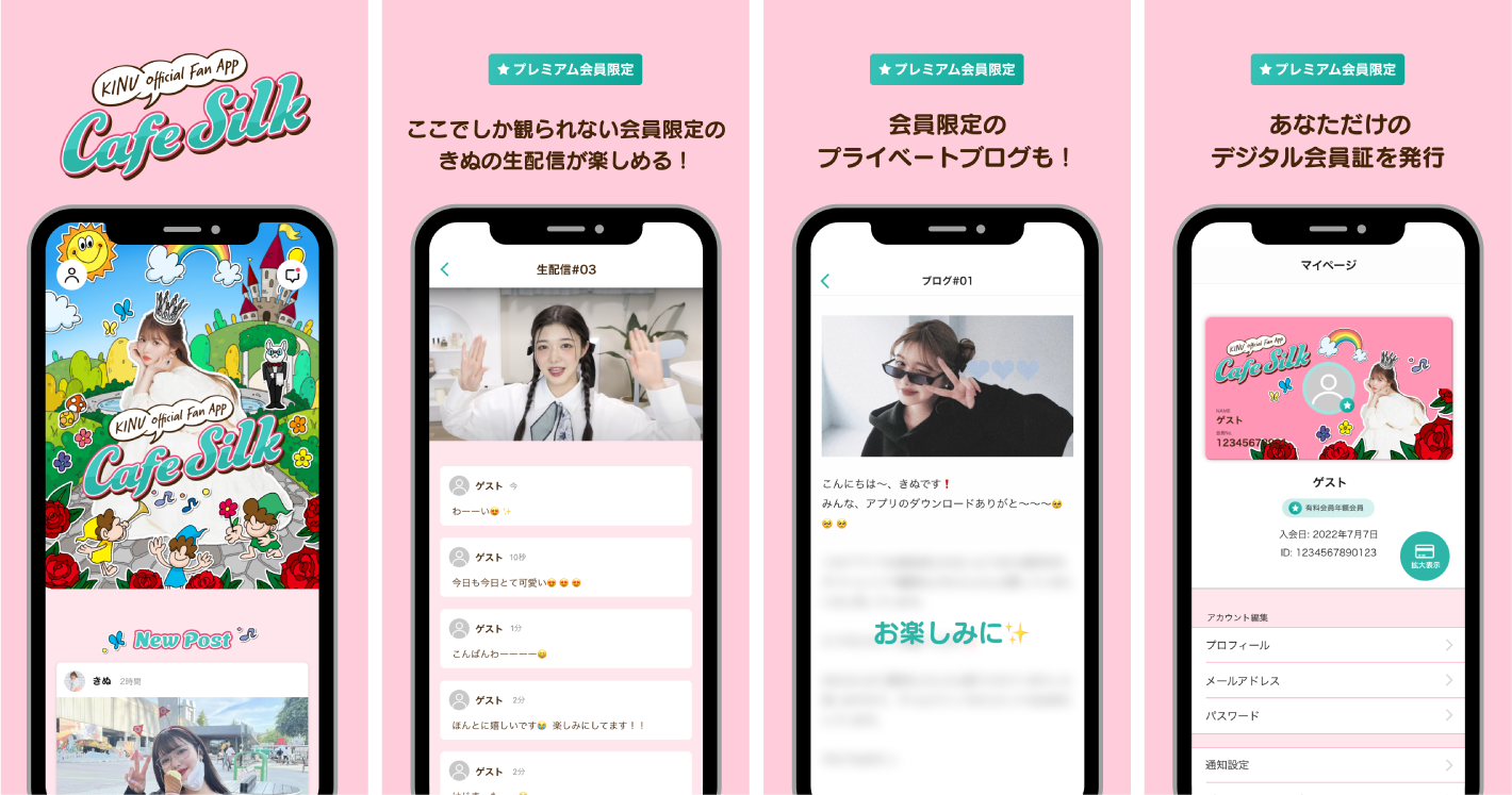 マルチに活動する、美容系YouTuber きぬのオフィシャルアプリ『Cafe Silk』。最新情報はもちろん、アプリでしか見ることのできない会員限定のオリジナルコンテンツ(ブログ、生配信、タイムライン等)をお楽しみいただけます。ファンの皆さんと、どこよりも近い距離で、Cafeのようにくつろげる空間をご提供します。