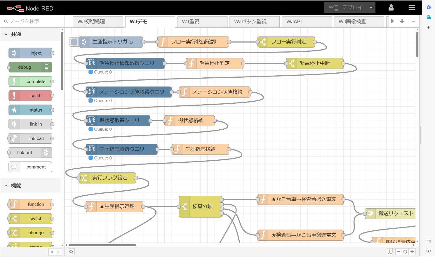 →全ての機器を一元的にソフトウェア上で管理。フロー作成はNode-REDベースで、フローをつなぎ変えるだけで工程変更が可能。