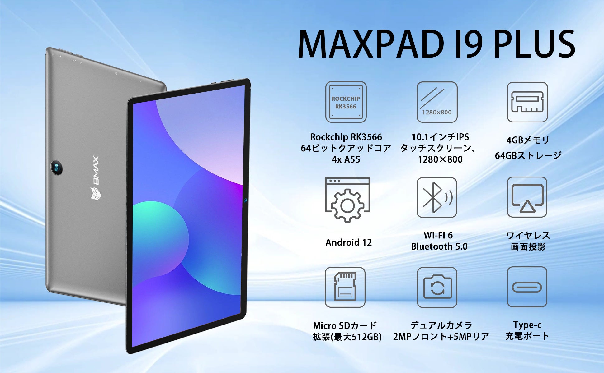 BMAX I9Plus Android 12 タブレット 10インチ wi-fiモデル 4GB RAM+64GB ROM+MicroSD拡張可能 5000mAh バッテリー 1280*800IPSディスプレイ4コアCPU 2MP+5MPカメラ Google GMS認証 Bluetooth5.0+2.4G/5G Wi-Fi Type-C タブレット アンドロイド+分割画面機能搭載+Widevine L1をサポート+子供用タブレットPC