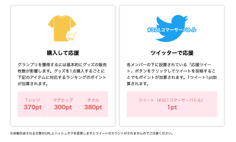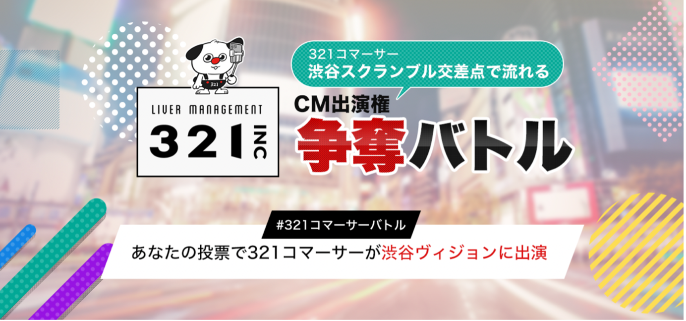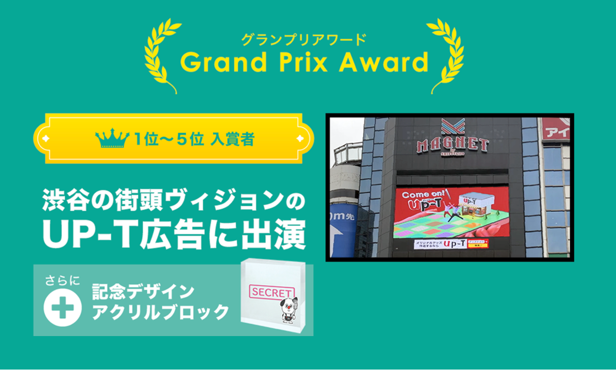 オリジナルグッズ作成のUP-Tと321所属の人気コマーサーのコラボレーション企画がスタート!渋谷109フォーラムヴィジョン出演権をかけて争奪バトルを開催します。本イベント限定で描き下ろしたグッズを販売して最も多くのポイントを獲得した出演者がグランプリに輝きます!イベントへの参加方法は、応援購入だけでなく、ツイッターでの投稿からも手軽に応援することができます。ぜひ皆さんの応援で、推しの321コマーサーが渋谷のヴィジョンに出演する夢を叶えましょう!