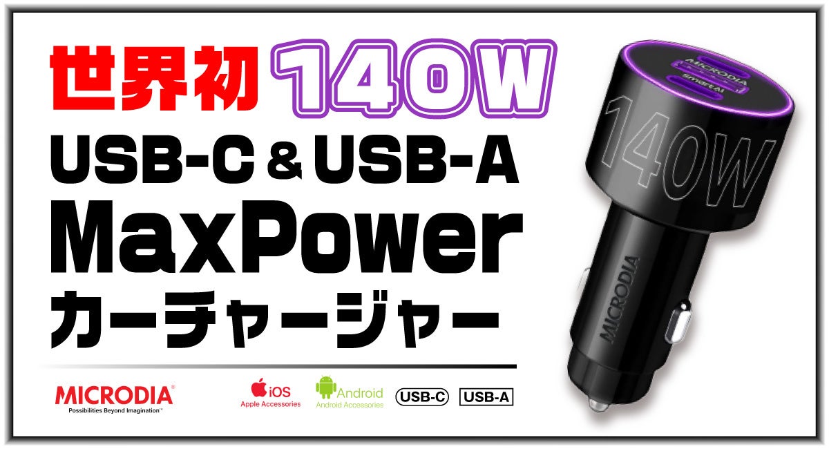 MICRODIA 140W USB-C & USB-A MaxPowerカーチャージャー