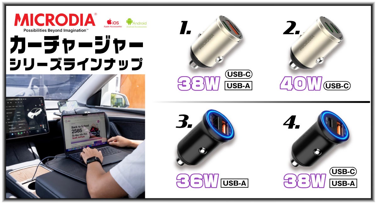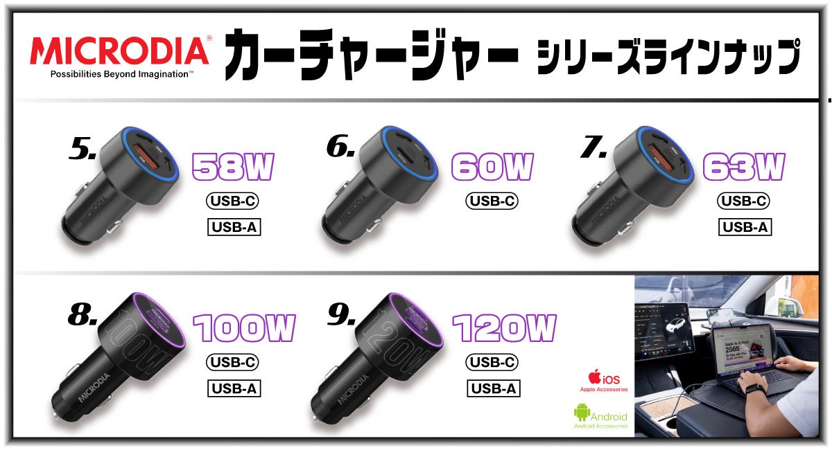 MICRODIA 120W USB-C & USB-A カーチャージャー