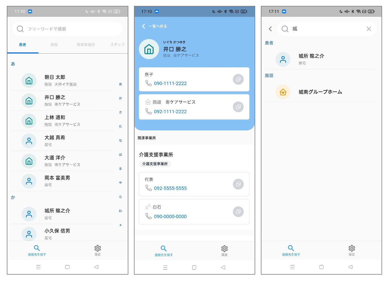・CrossLogの患者/施設/関連事業所/スタッフで電話番号登録があるデータをスマートフォンの連絡帳に同期。
