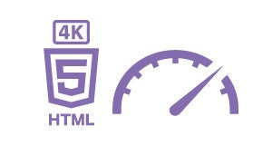 コンテンツに合わせてメモリーリソースを柔軟に制御し、高速かつスムーズに4K/フルHDビデオコンテンツや2D Web GLモーショングラフィックス、JavaScriptなどを再生します。従来のモデルでは表示が難しかった「BrightSign」向けに最適化されていないHTMLコンテンツのパフォーマンスも向上しています。また、ChromiumベースのOpenGL ESをサポートしており、多彩なグラフィック表現が可能です。