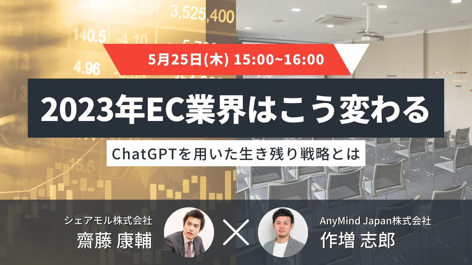 シェアモル株式会社(本社:東京都墨田区、 代表取締役:齋藤 康輔)は、2023年5月25日、2023年EC業界はこう変わる ChatGPTを用いた生き残り戦略とはというタイトルで共催ウェビナーを開催いたします。
