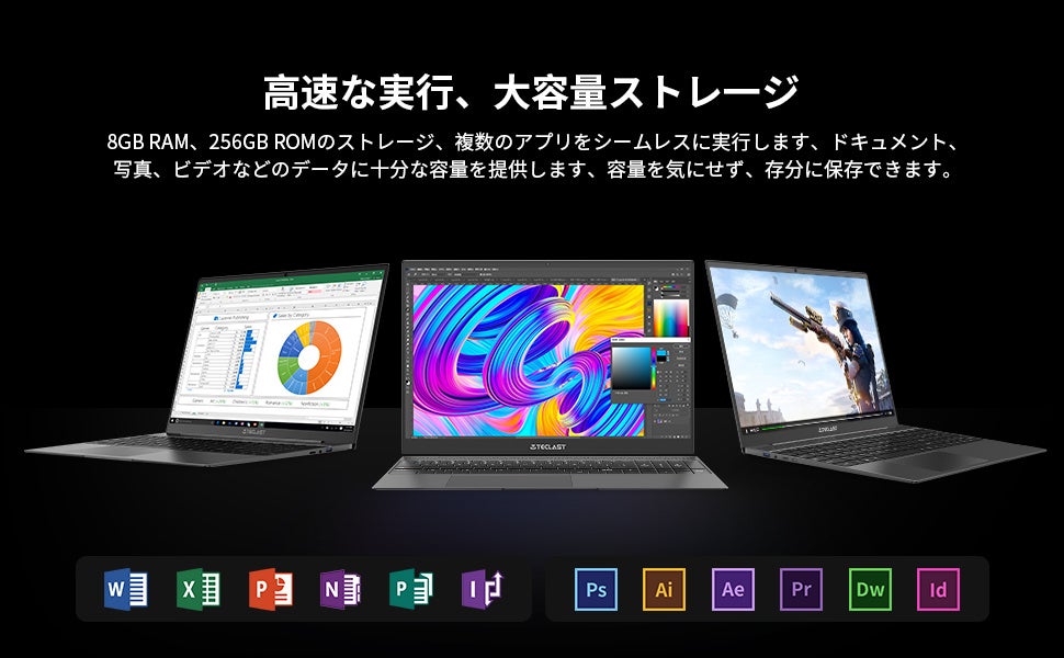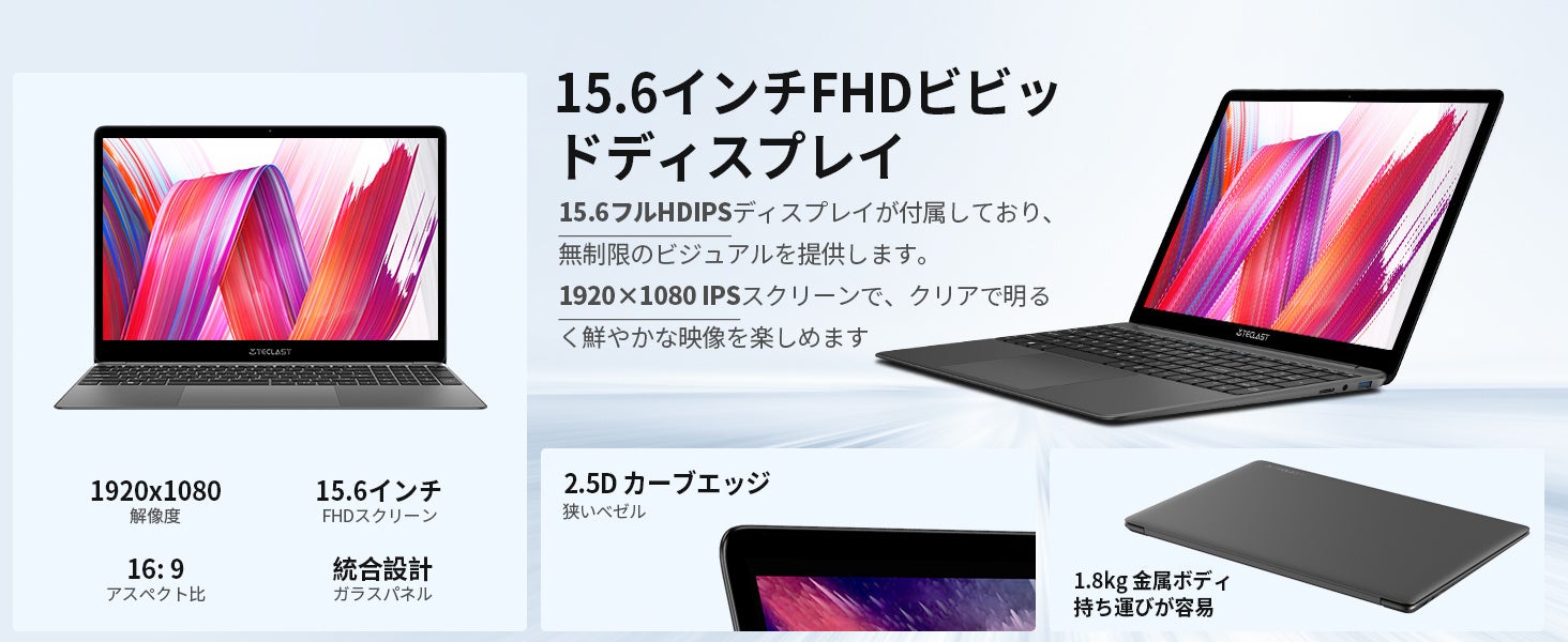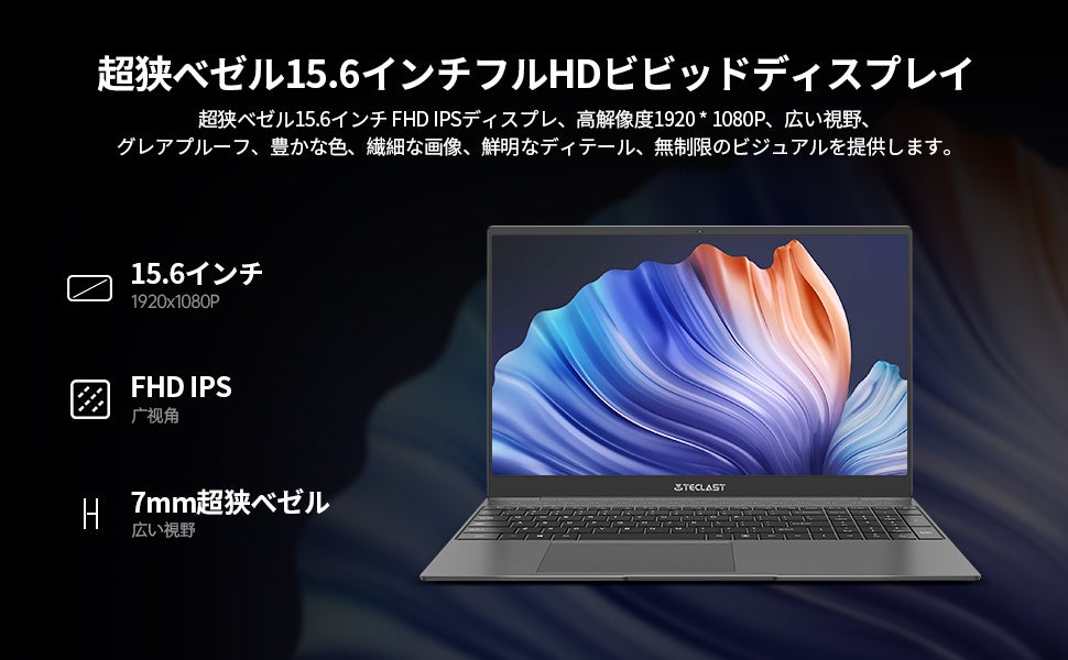 【15.6インチの薄くて軽いポータブルメタルボディの大画面】 TECLAST パソコン、15.6インチのオールメタルボディがあり、厚さ7mmの狭い側面を備えた適切に設計された2.5D保護パネル、1920×1080フルHD IPS大画面、91%の画面比率、クリアな色とコントラスト、最高の視聴体験を提供します。最適です文書作成、スケジュール作成、提案書作成、事務処理、web閲覧、ネット検索、動画編集、YOUTUBE動画視聴に最適。