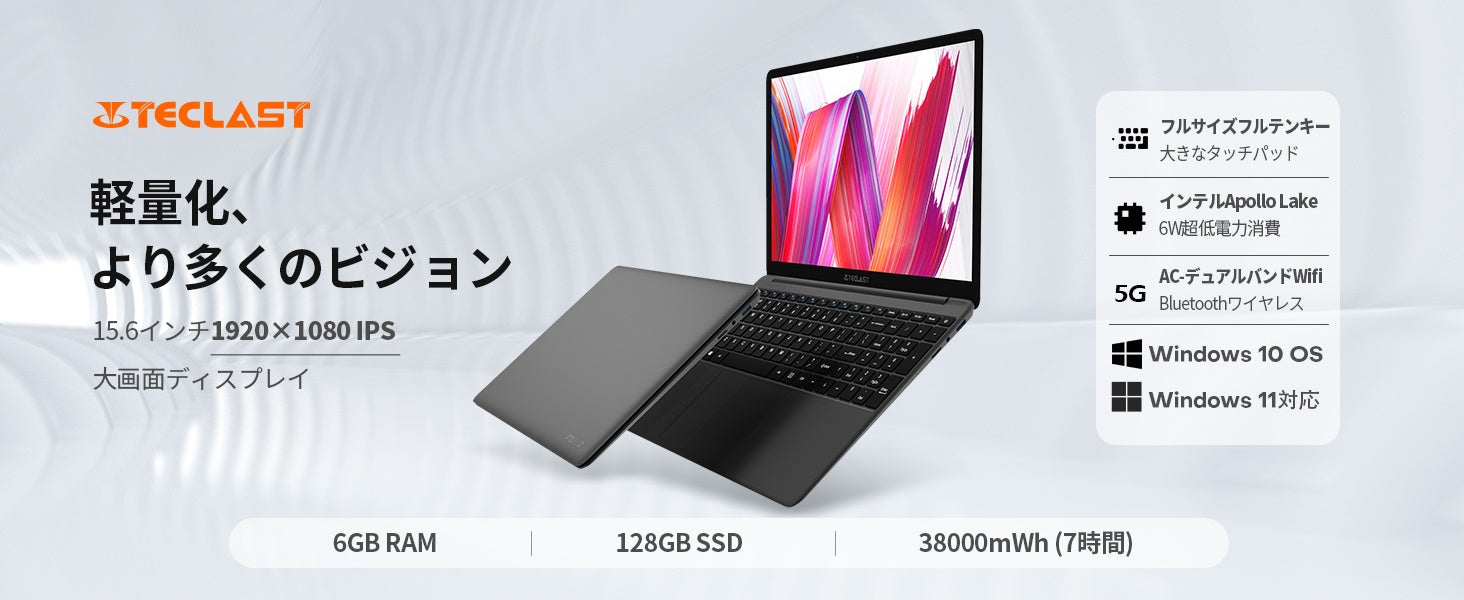 Teclast販売されている大画面&薄型ノートパソコンおすすめます。今Amazonで最大41% OFFのクーポン配布中、28日(日)に終わります。仕事や遊びにも適ですね。