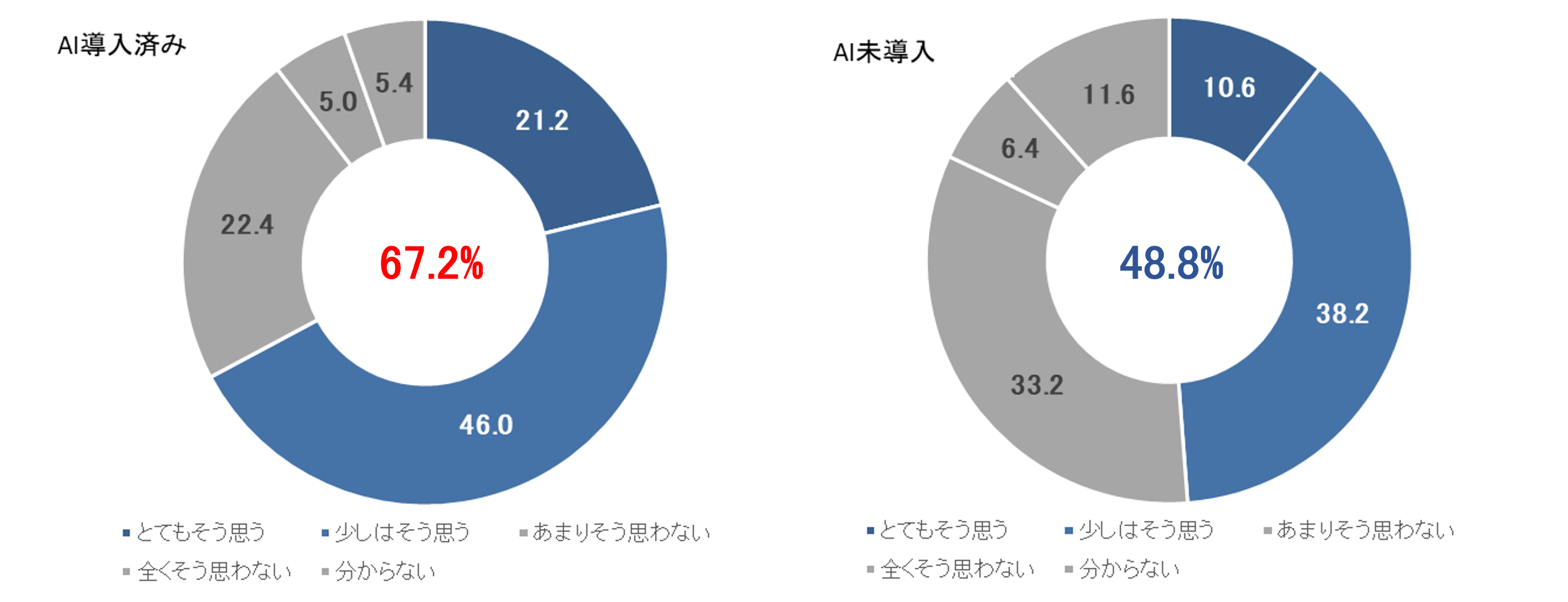 ▶導入済み企業で働く約7割の人がAI導入に積極的。