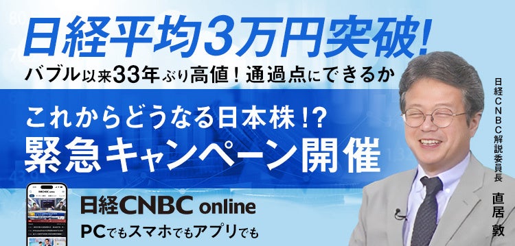 日経平均は1年8ヶ月ぶりに終値ベースで3万円を回復しました。バブル以来33年ぶりとなる高値を付けるなど、今後の行方に注目が集まっています。日経CNBCでは5月29日(月)~6月4日(日)の期間に「これからどうなる日本株!? 緊急キャンペーン・イベント」を開催し、日本の株式マーケットを展望します。