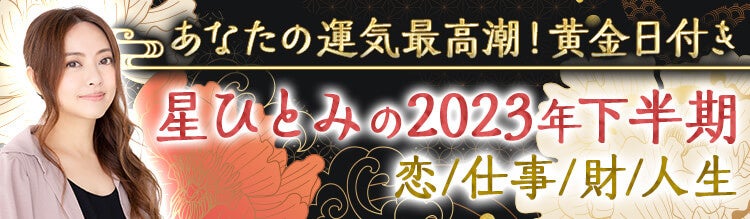 テーマ別の恋愛運、仕事運、財運まで星ひとみが一気に占います。さらに、あなたの運気が最高潮になる「黄金日」つき。2023年大事なことが控えているあなた、下半期の「黄金日」をチェックするのを忘れずに!