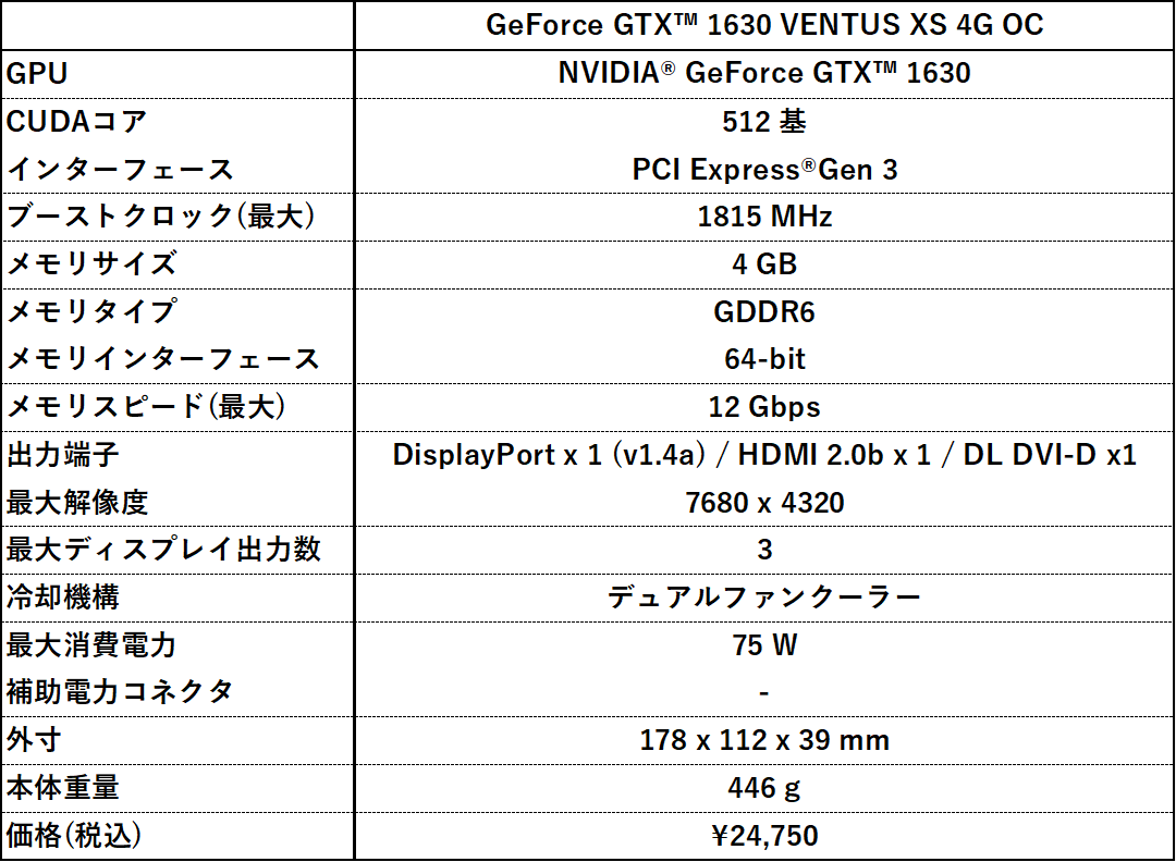 https://jp.msi.com/Graphics-Card/GeForce-GTX-1630-VENTUS-XS-4G-OC