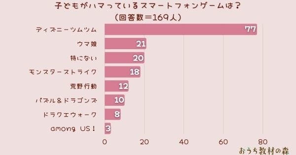 「子どもがハマっているスマートフォンゲームは?」とアンケート調査した結果、1位は『ディズニーツムツム』でした。