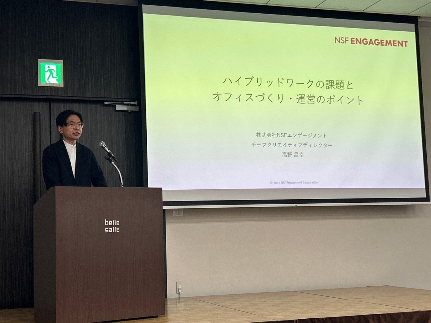 新製品発表会ではまず、株式会社NSFエンゲージメントのチーフディレクター 高野昌幸氏に、ハイブリッド会議ソリューションでコミュニケーションを円滑に進めるための課題と対策のポイントについてお話いただきました。