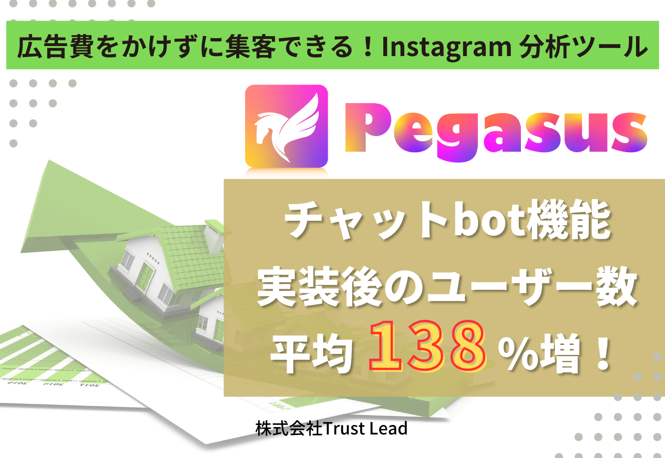 工務店におけるDXの導入は、価格やシステムの種類の多様性などにより敷居が下がってきていますが、社内の担当者が専任でなかったり、DXツール導入後のアナログルールが不明確であったりと、DXツール導入自体がゴールとなっているケースが多いということがあります。株式会社Trust Leadは、こうした工務店の悩みやリソース不足を解消するためにInstagram支援ツール『Pegasus』を進化させ続けてまいります。