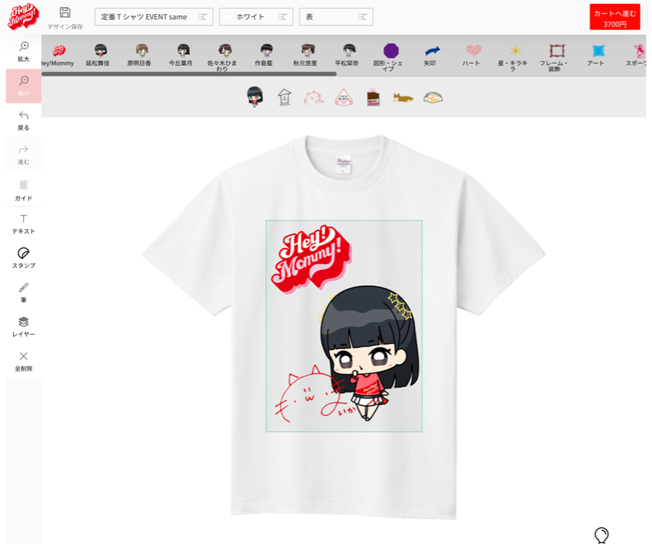 人気アイドルグループHey!Mommy!とオリジナルTシャツ作成のUP-Tが、待望のコラボレーションイベントを開催いたします!このコラボでは、Hey!Mommy!のメンバーが自ら手掛けた描き下ろしデザインと可愛らしい2Dのキャラクターを使ってオリジナルグッズの製作が可能です♪スタンプの大きさや向き、配置などは自由自在で、アイデア次第で限りない組み合わせが楽しめます!あなただけのオリジナルグッズを制作し、Hey!Mommy!のライブに参加してみませんか?この特別なイベントで、ファン同士が一体となり、熱狂の舞台を盛り上げましょう!お見逃しなく!