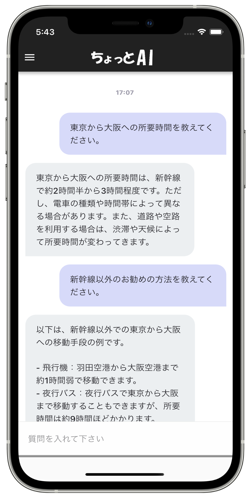 ・ChatGPTのターボ版を使っているので、高速です