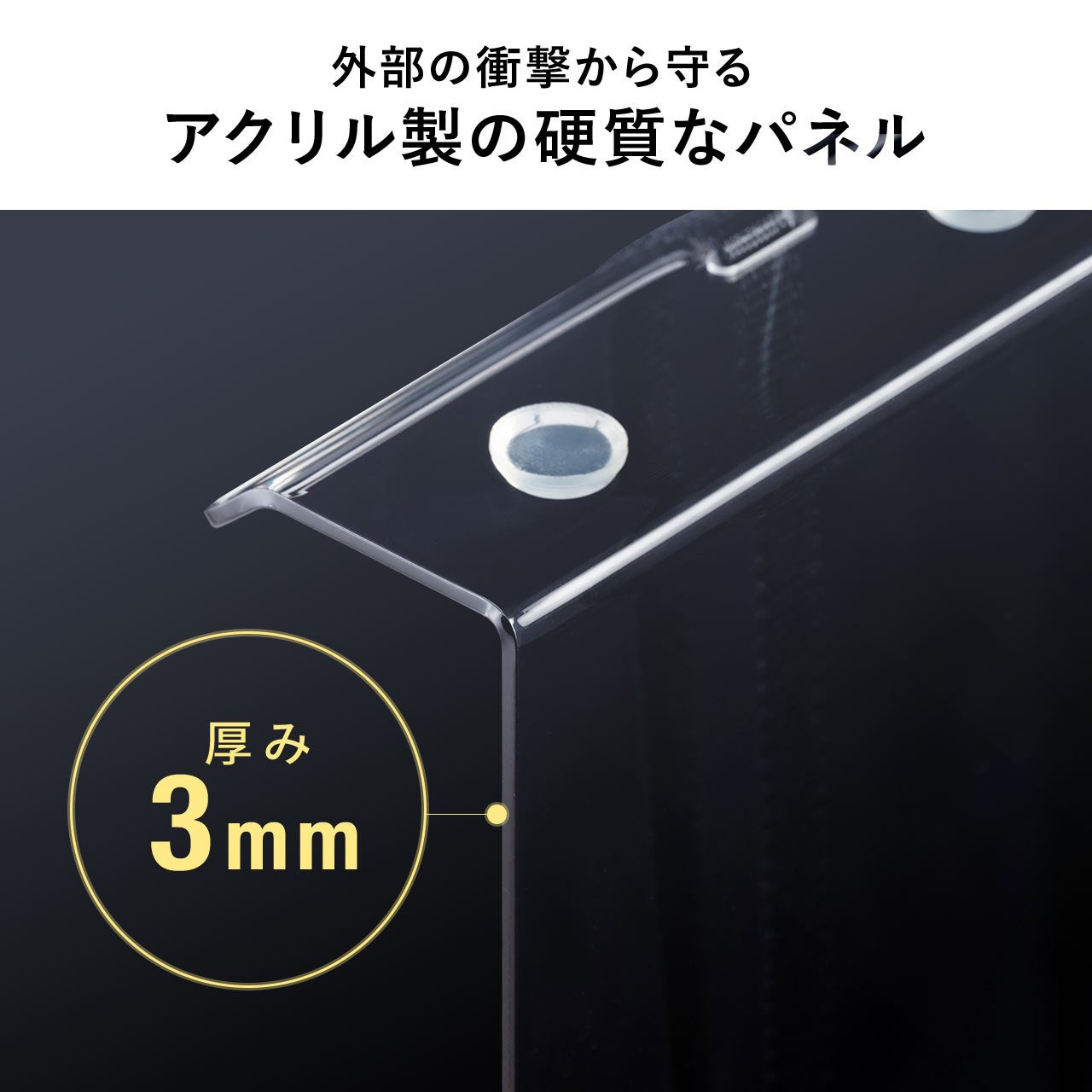 大切なディスプレイを外部の衝撃から守る堅いアクリル製パネルです。