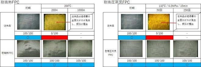 耐高熱FPCおよび耐高圧蒸気FPCの絶縁層密着性と電気特性