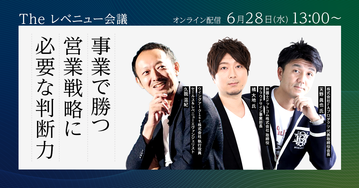 今回は、株式会社FAプロダクツ 代表取締役会長で元キーエンス・トップセールス、『シン・営業力』の著者 天野 眞也氏と、弁護士ドットコムの取締役で契約マネジメントプラットフォーム「クラウドサイン」事業責任者として圧倒的な事業成長を率いる橘 大地氏をお迎えし、主に下記2点について、組織全体の収益マネジメントにつながる「レベニュー思考」を編み出しながらディスカッションしていきます。ぜひご参加ください。