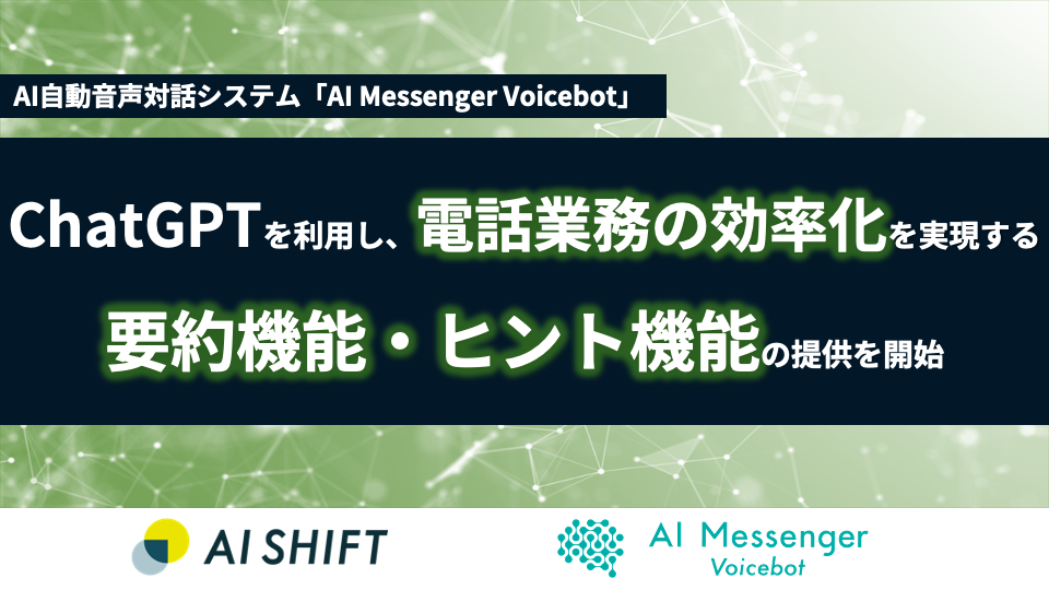 昨今OpenAI社が開発した「ChatGPT」※1をはじめとする生成AI・LLM (大規模言語モデル) が世界的に注目を集め、当社でもサイバーエージェント独自の日本語LLMを活用し、カスタマーサポートに特化した各企業専用LLM構築サービスを提供開始しました。その他にも、当社ではカスタマーサポートのDXを加速させるため、サイバーエージェント独自の日本語LLMや、その他LLMを活用したプロダクトを検討しております。この度は、電話対応終了後の後続業務を簡易化することを目的に、LLMの技術をAI Messenger Voicebotにおいて利用します。
