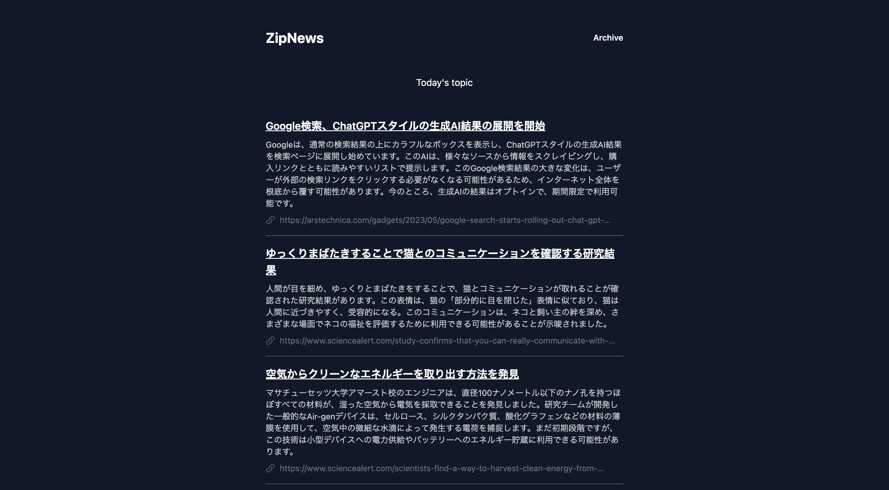 現在、「ZipNews」はベータ版として限定的なユーザーのみが利用可能で、フィードバックを収集してサービスを改善していく方針です。