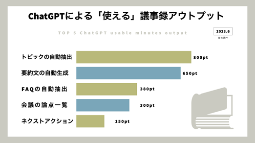 先日、会議議事録AI「YOMEL」とChatGPTの提供元であるOpenAI社のAPIが連携し、ワンクリックで会議の要約から質疑応答内容の自動抽出、トピックスの自動抽出までを行うことができるようになったことを発表しました。この革新的な機能により、会議議事録作成業務の圧倒的な効率化が実現されます。