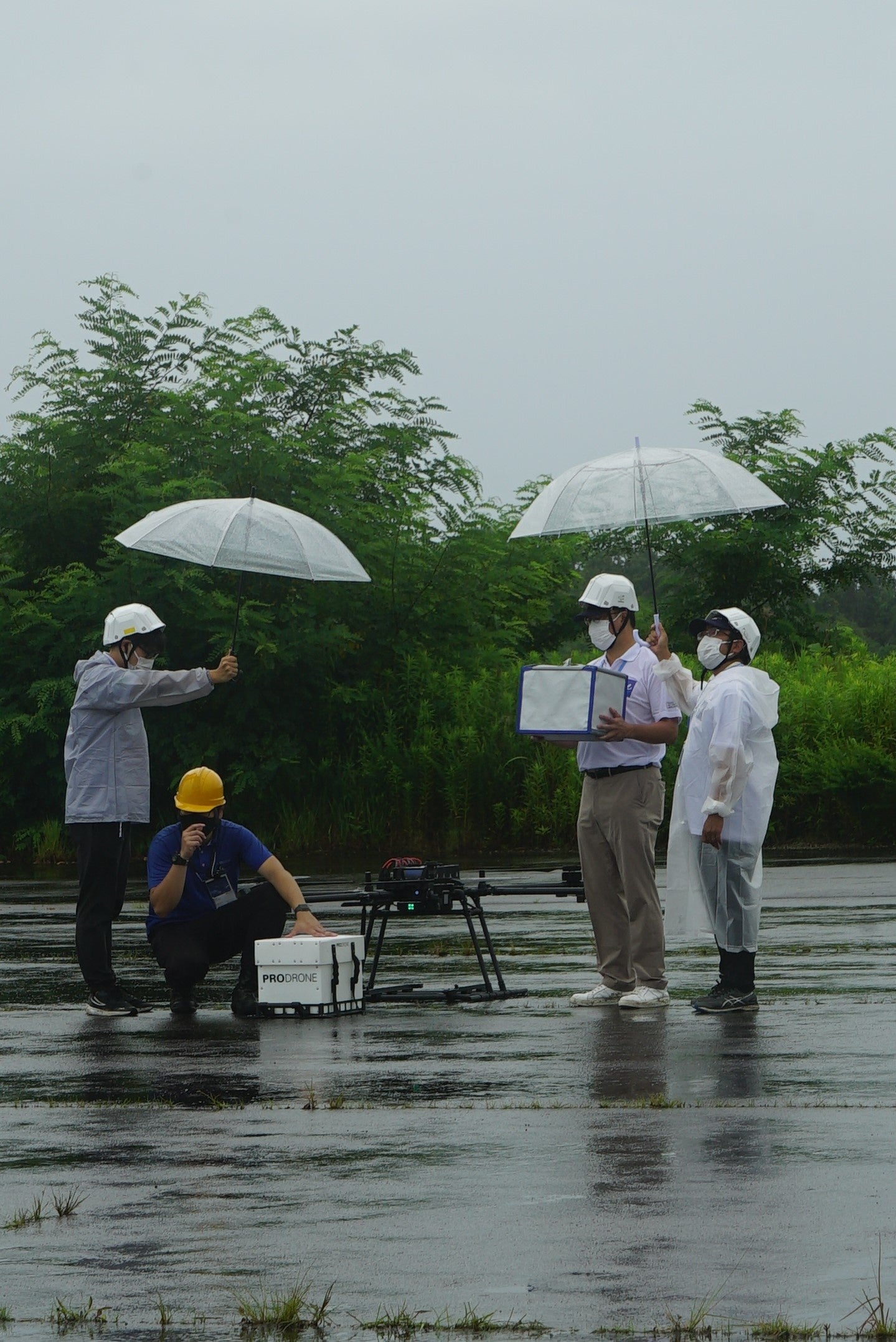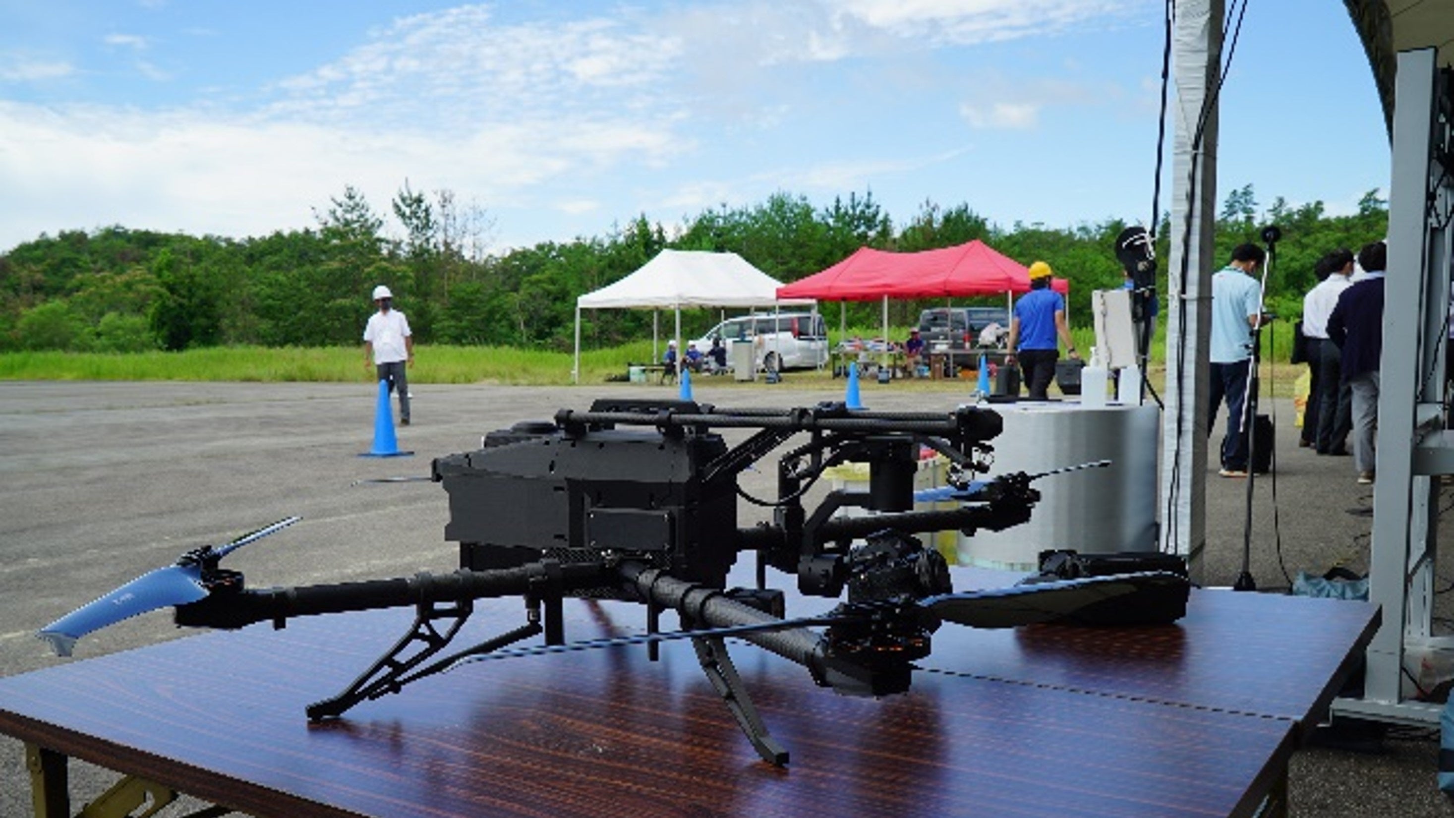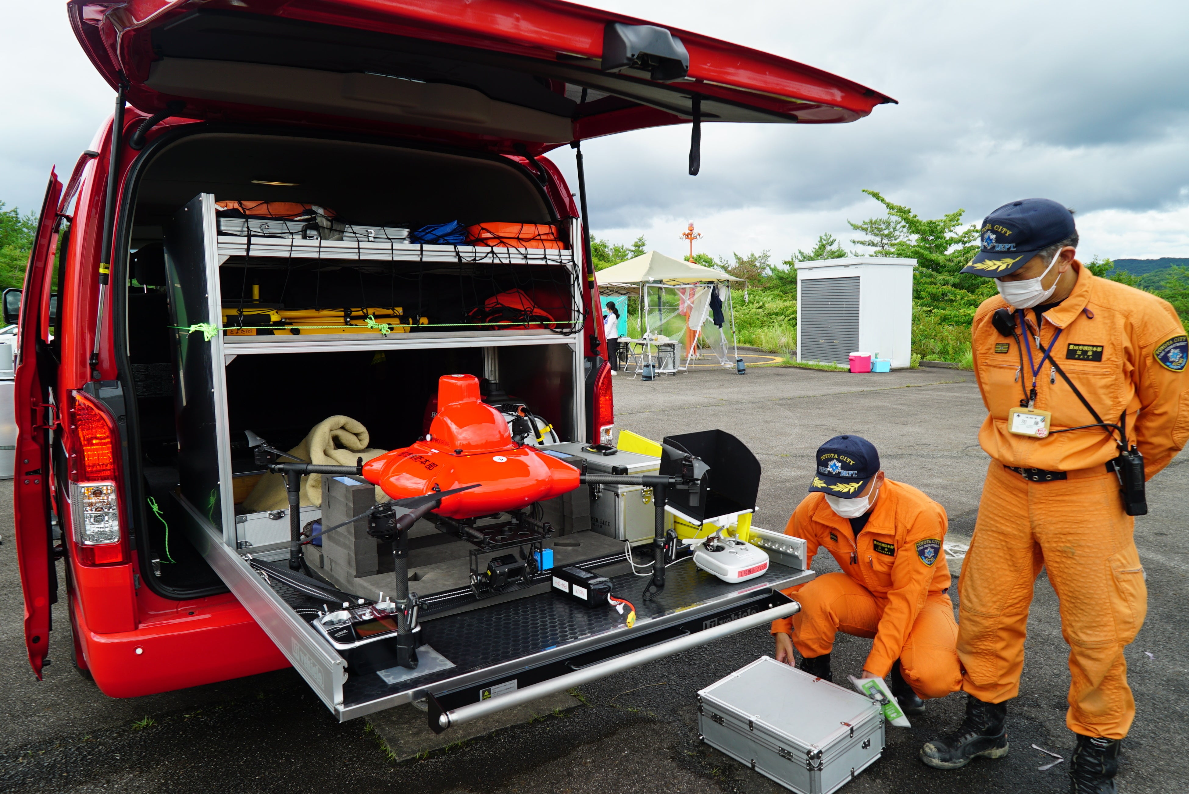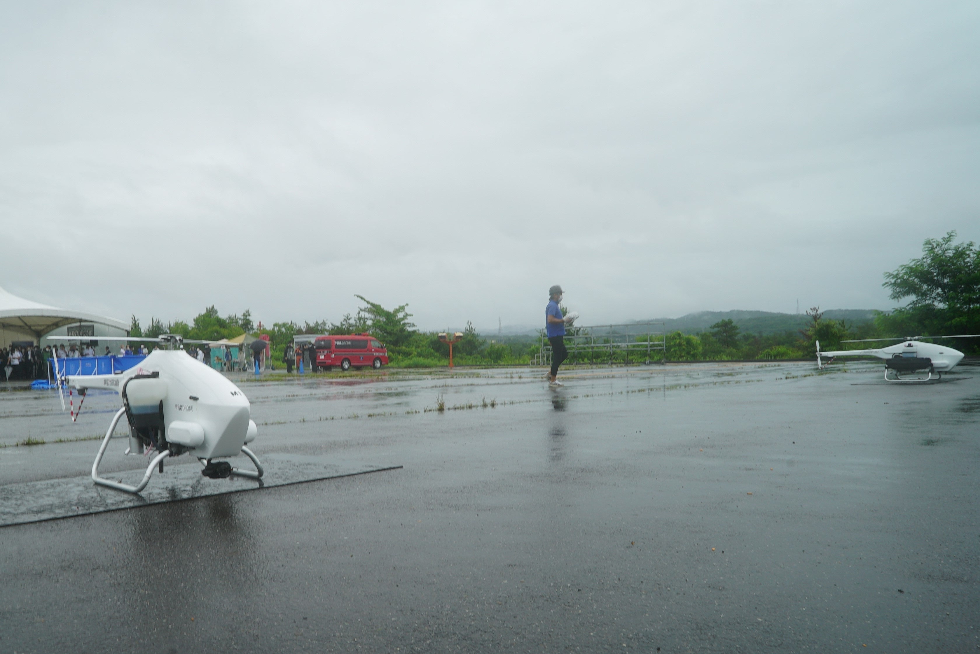 雨交じりの「DRONE EXPO 2022 in Aichi」豊田市消防本部のデモ(※1)