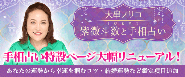 人気占いバラエティ番組出演で今大注目の鑑定士・大串ノリコが監修する、紫微斗数(しびとすう)と手相占いに特化したスマホ専用月額占いサイト『大串ノリコ 紫微斗数と手相占い』。