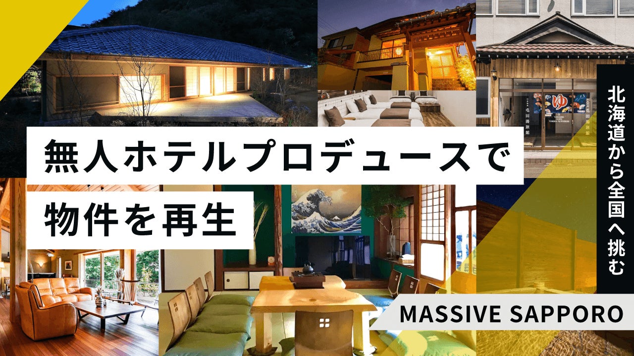 MASSIVE SAPPOROは、北海道を基点に全国の先駆け的存在として民泊や小規模無人ホテルの開発・運営を手掛けてきたスタートアップです。インバウンドと再生した不動産の力で、日本の観光産業の潜在力を最大限に引き出し、地方創生に貢献することを目指しています。