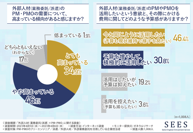 そこで今回、シニアエンジニア向けの求人サイト『SEES』(https://miraie-sees.com/)を運営する株式会社Miraieは、PM・PMOのフリーエンジニア/派遣/外部人材/外部業務委託を活用している企業担当者を対象に、「外部人材(業務委託/派遣)×PM・PMO」に関する調査を実施しました。