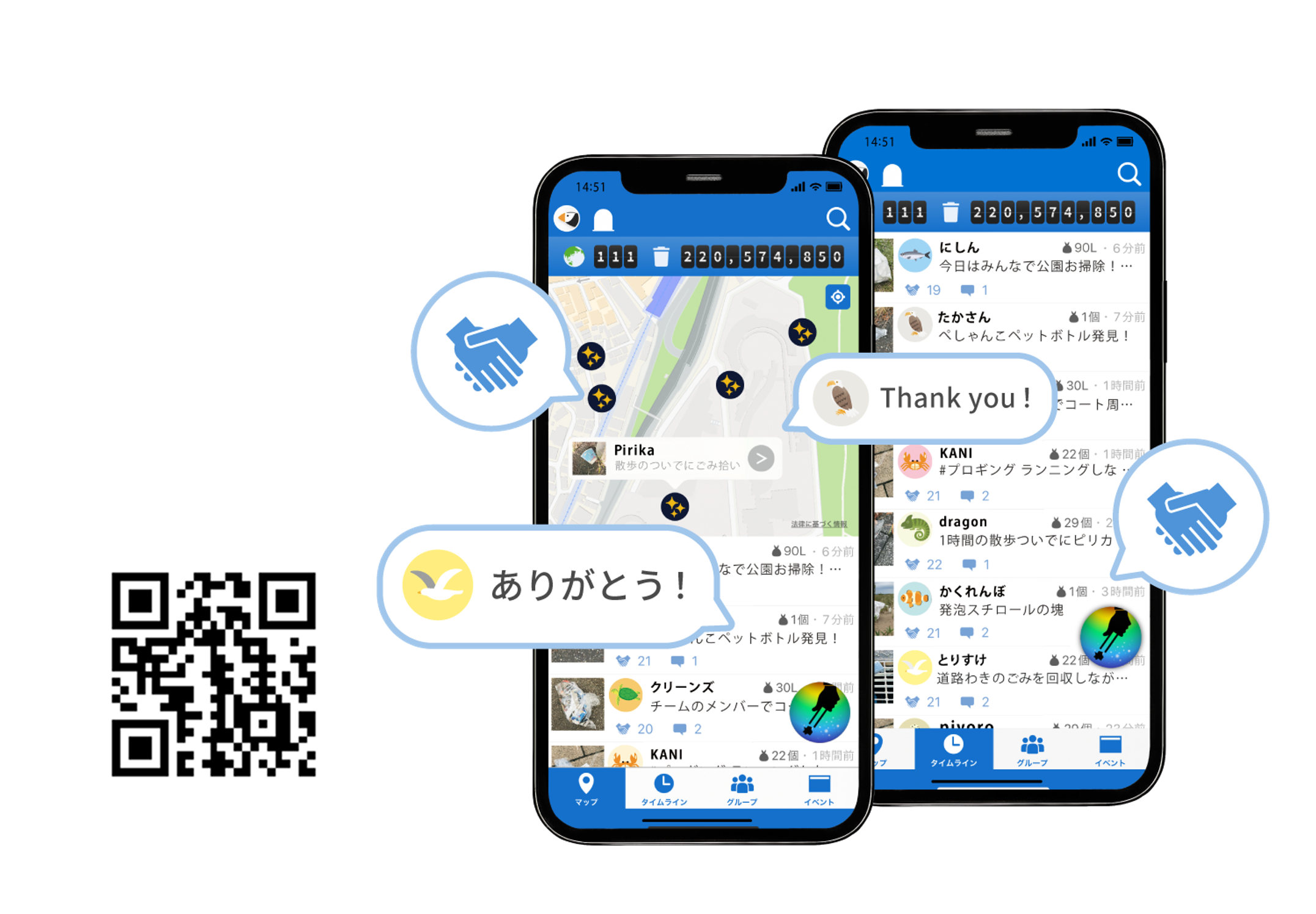 ごみ拾いSNS「ピリカ」は2011年にリリースし、現在118の国と地域から累計3億個のごみが拾われています(2023年5月30日現在)。累計ありがとう数は約3,000万、ごみ拾い活動を通じて多くのコミュニケーションが生まれています。自治体や企業による清掃活動の可視化と促進を目指す「見える化ページ」等の導入も拡大しています。