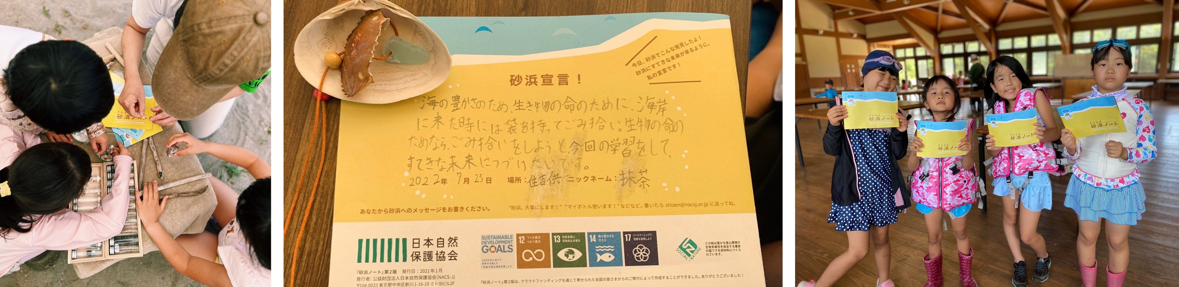 陸の自然に比べると、海や砂浜の生きものやしくみを知る機会や資料はとても少ないのが現状です。そこで NACS-J は、海や砂浜のことを楽しく学べる特製の「砂浜ノート」を作成しました。お子様のいる家庭や、自然観察会やビーチクリーン、学校の授業や自由研究などにも活用いただけます。砂浜ノートは申込み先着順に、希望部数を無料でお送りします。申し込みは以下より受付中です。(在庫が切れ次第終了となります。)