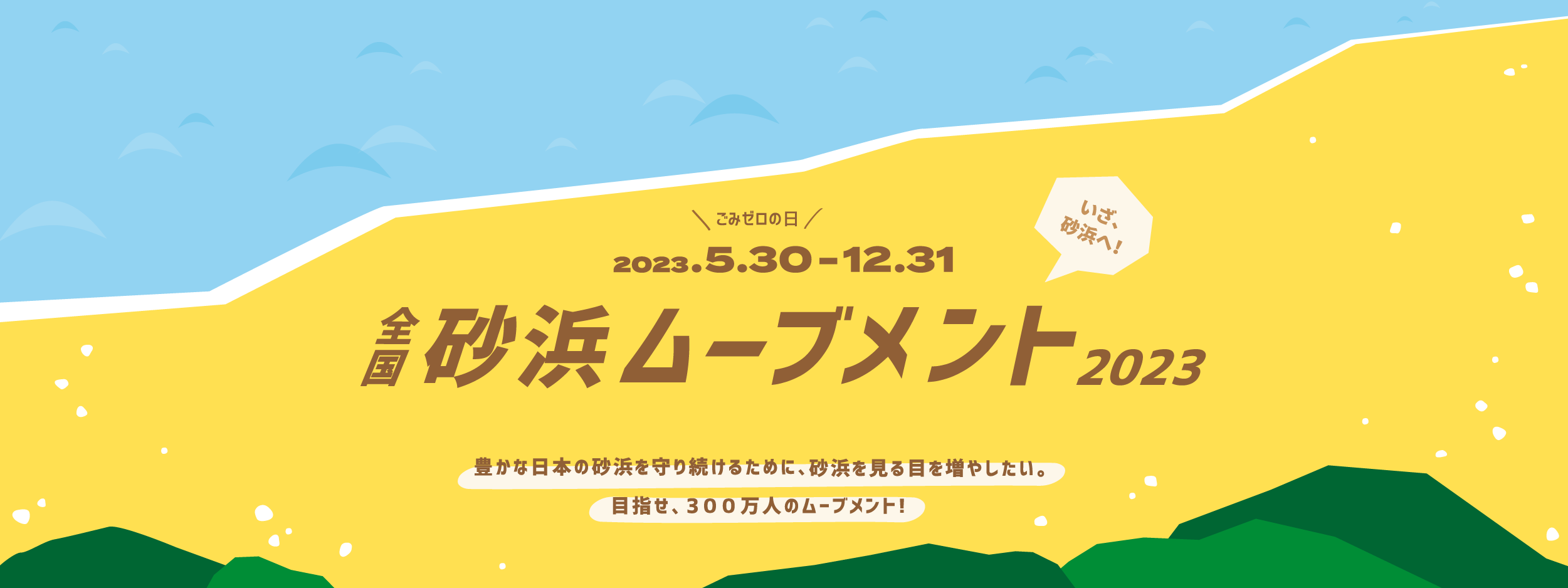 全国砂浜ムーブメント豊かな日本の砂浜を守り続けるために、砂浜を見る目を増やしたい。目指せ300万人のムーブメント!~地球温暖化、コンクリート化、大量の海ごみ、マイクロプラスチック…。このままでは日本の砂浜がなくなってしまう。だから、私たちは自然豊かな美しい砂浜を守りたい。~