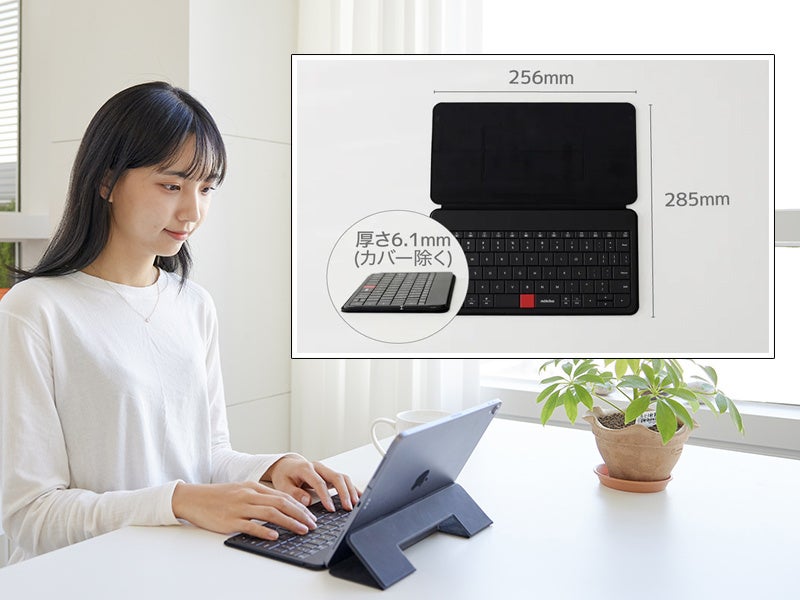 キーボードとタッチパッドが一体化。スタンドやマウス、キーボードケースを別々に買う必要がありません。