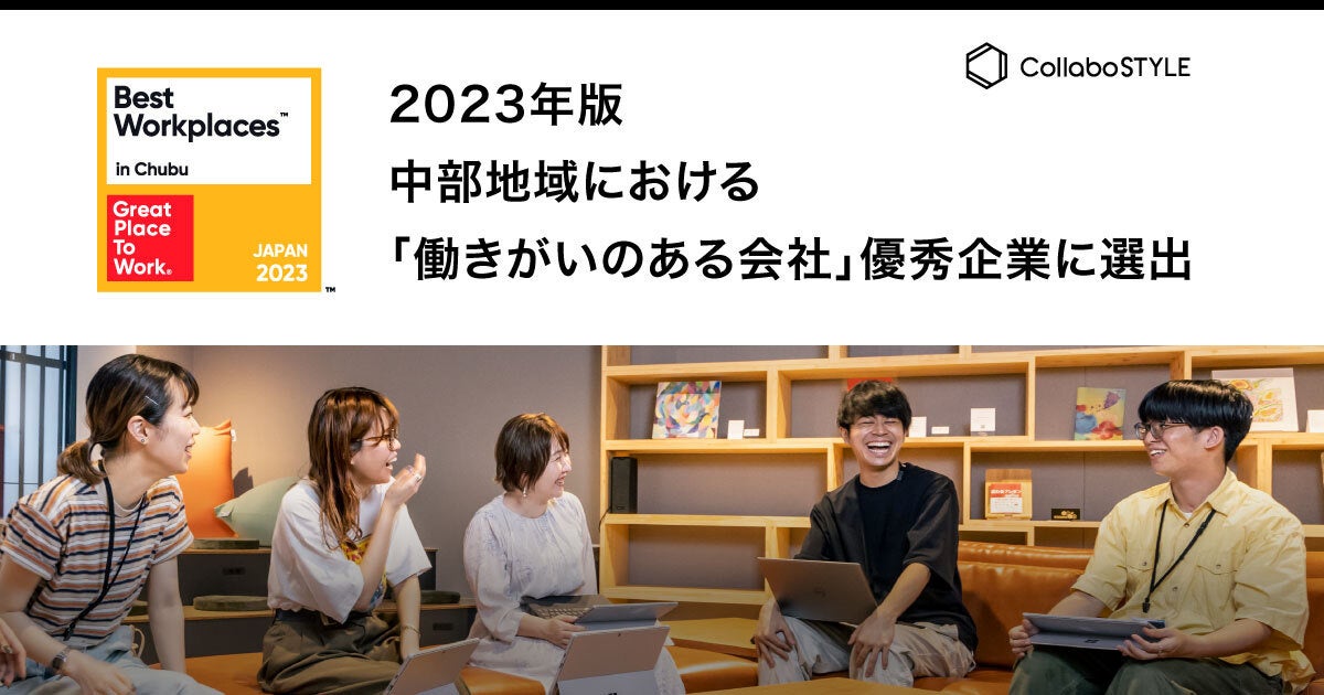 「地域優秀企業賞」は、2023年版日本における「働きがいのある会社」認定企業の中から、各地域エリア内において特に働きがいの高い企業を「優秀企業」として選出したものです。コラボスタイルは中部地域(新潟、富山、石川、福井、山梨、長野、岐阜、静岡、愛知)での入賞となります。