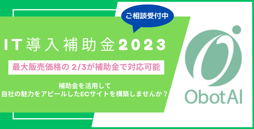 ※一定の条件を満たす中小企業・小規模事業者様には、ObotAIが提供するShopify ECサイト構築ツールを活用してECサイトを構築すれば、 ObotSERVE(ChatGPT連携のチャットボット)の導入費用(2年分の費用)の約2/3が補助対象となります。