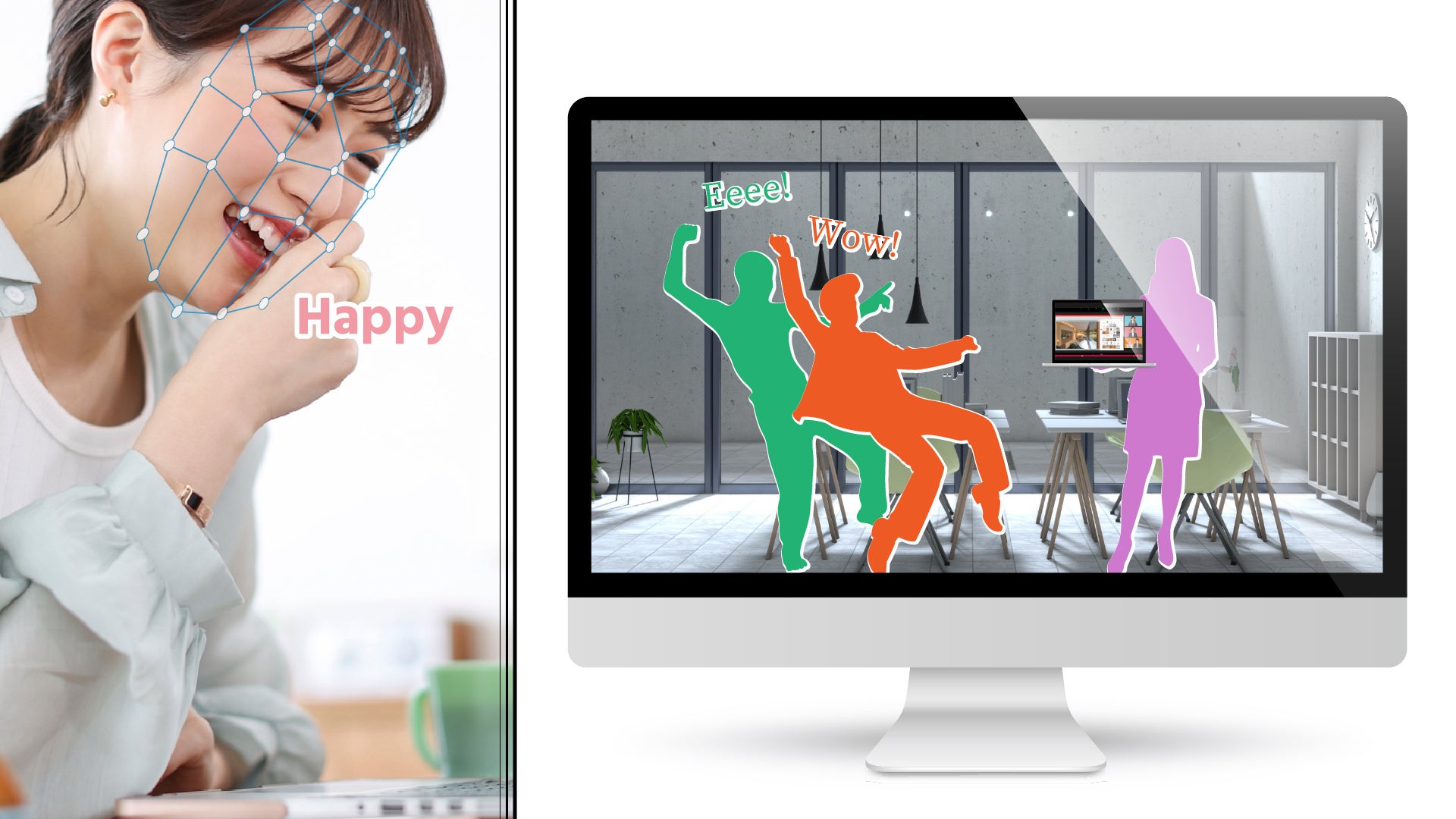 番組視聴者の「集中力」や「興味の度合い」「視線」をAIで可視化し反響を分析します。ユーザーの無意識な興味や本音を可視化できるため、既存の調査(アンケート等)ではわからない心理解析を可能とします。