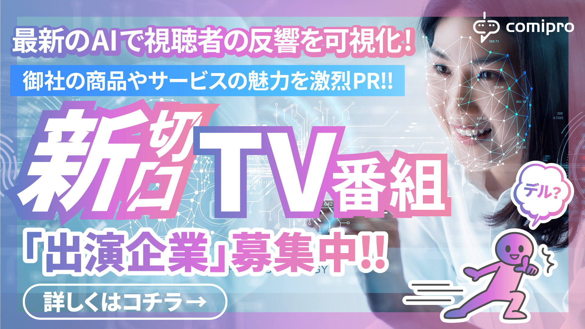 「comiproAI」を活用するテレビ番組にご出演いただける企業様を募集しています。