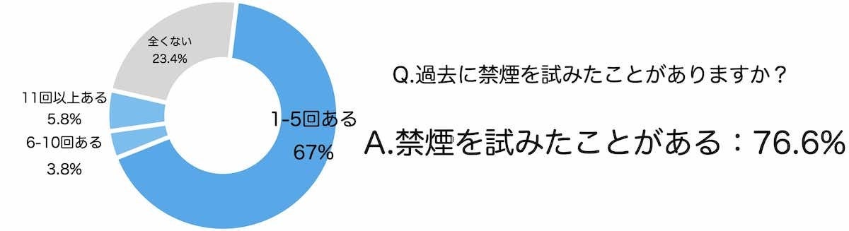 喫煙者の中で、過去に禁煙を試みた経験がある人は全体の76.6%にものぼりました。
