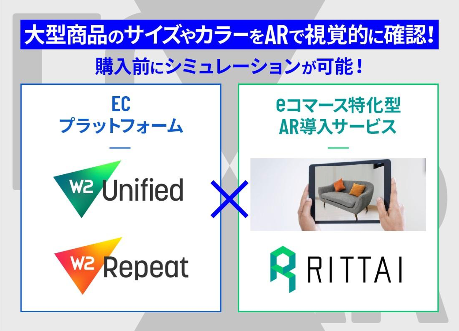 W2のECプラットフォームをご利用いただくEC事業者様は、eコマース特化型AR導入サービス「RITTAI」を自社のECサイトへ導入が可能となりました。
