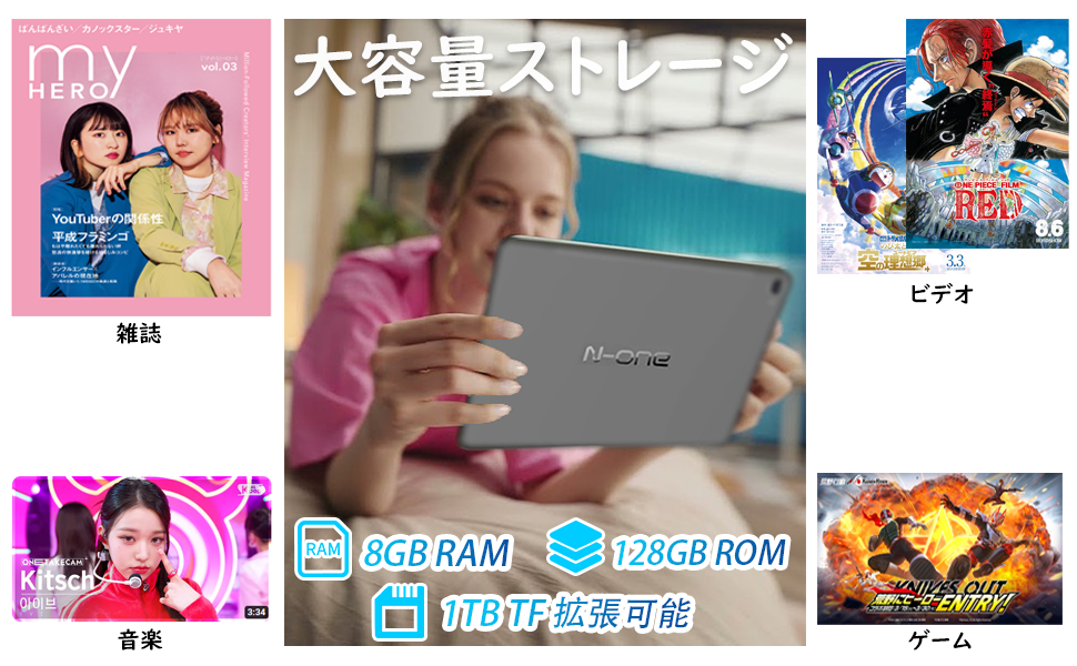 N-ONE NPad pro タブレットは UNISOC T616の強力な8コア高速処理チップを搭載し、UNISOC T616は12nmプロセスを使用し、2つのArm Cortex-A75ハイパワーコアと6つのCortex-A55インテリジェントAIコアを搭載しています。 発熱を抑えながら優れた性能を維持します。 Mali-G52マルチコアGPUはBifrostアーキテクチャベースであり、Vulkan、ES3.2などのグラフィックAPIをサポートし、モバイルゲームのビジュアルをさらに素晴らしい効果でレンダリングします。