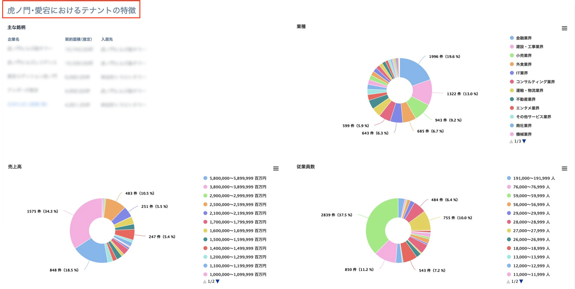 周辺動向を調査する際、指定したエリアに入居するテナント企業の業種や売上高などを簡単に確認することが可能になりました。リーシング時のテナント誘致に役立てていただけます。