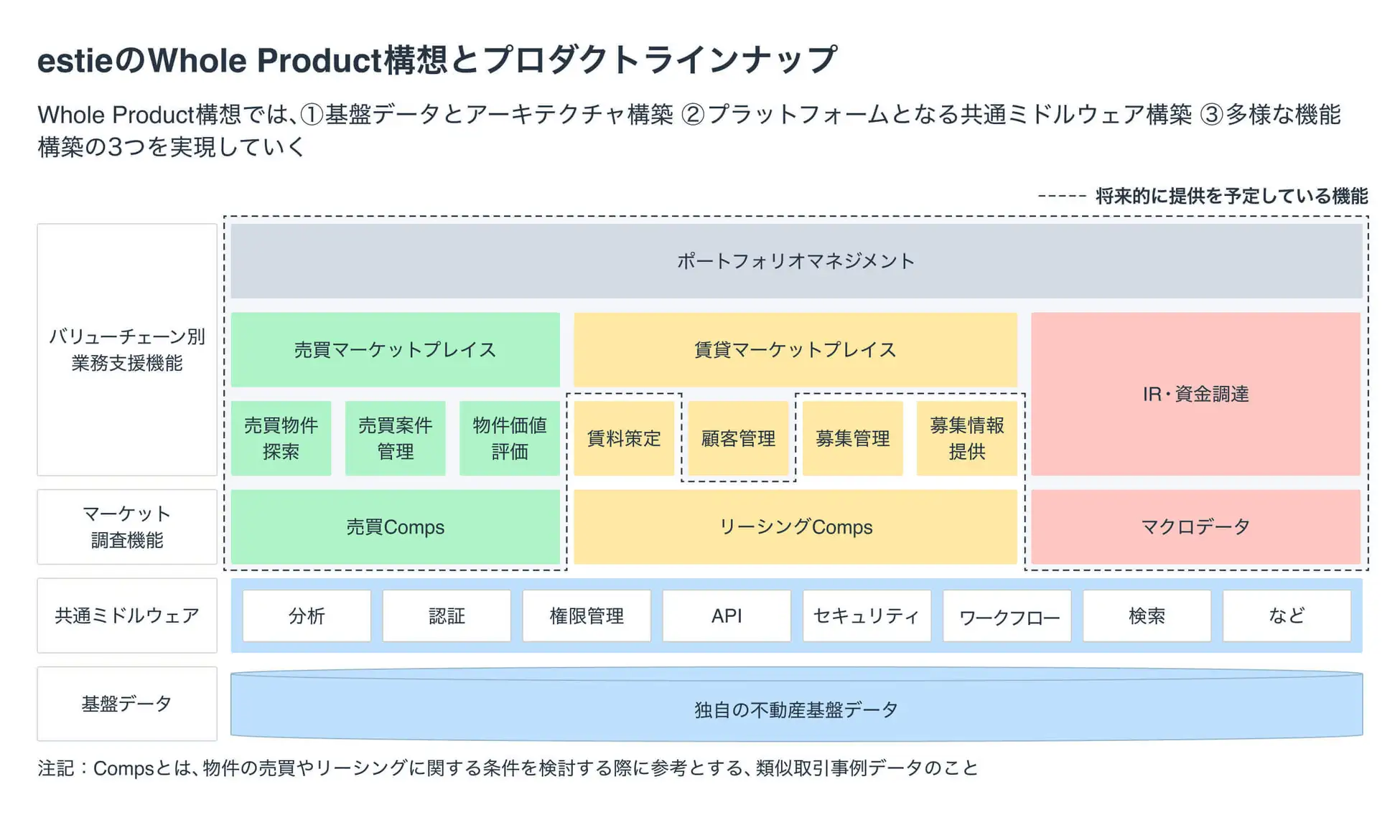 2023年4月の資金調達時に発表した、ユーザーに最高の顧客体験を届けることを目的にした「Whole Product構想」では、複数の業務領域・バリューチェーンを横断する事業活動を整理しています。