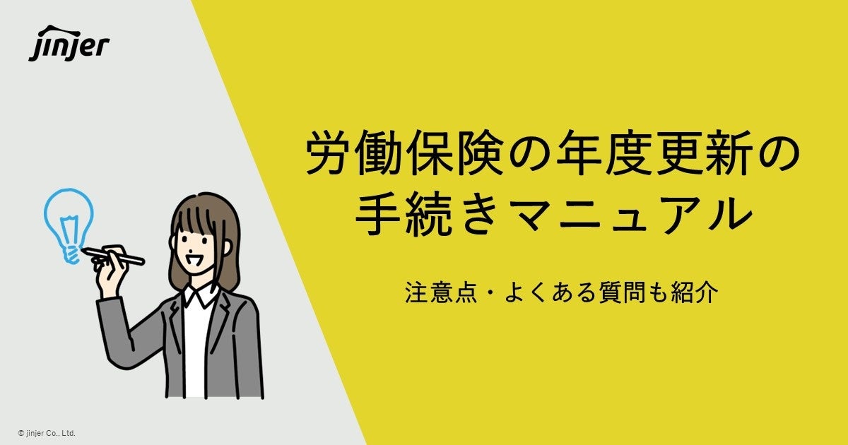 jinjerは、企業の人事担当者向けに、さまざまな業務支援情報の発信を「jinjer Blog」を通じて行っています。今回は、毎年6月1日~7月10日に労働保険の年度更新手続きをおこなう人事担当者向けに、手続きの進め方や注意点・よくある質問をまとめた「労働保険の年度更新の手続きマニュアル」に関するホワイトペーパーを公開しました。