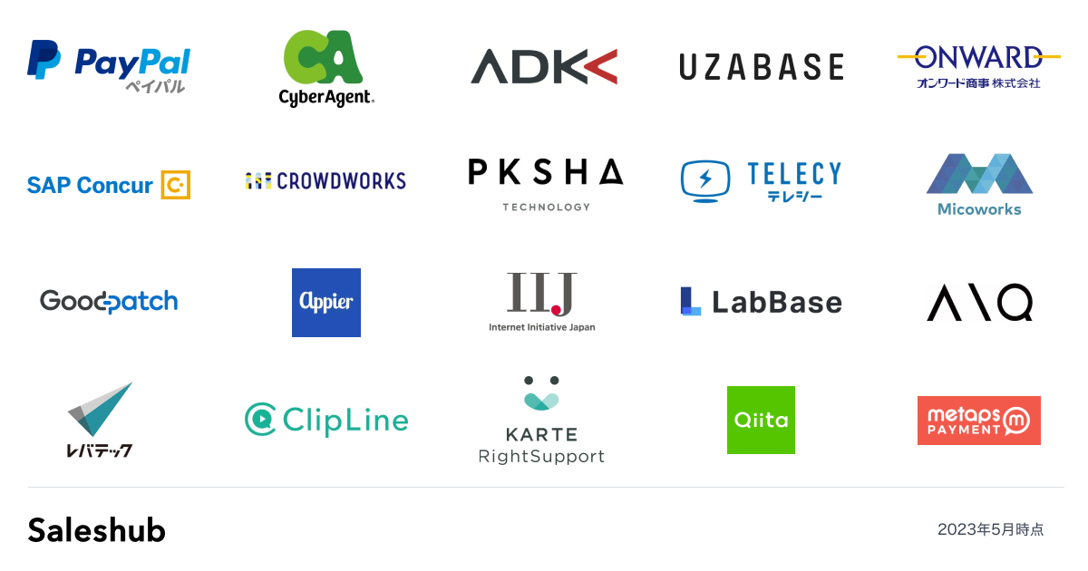 Saleshubは国内の急成長スタートアップから大手上場企業まで、国外の幅広い業界で新規開拓営業の新たな手法のひとつとして選ばれています。