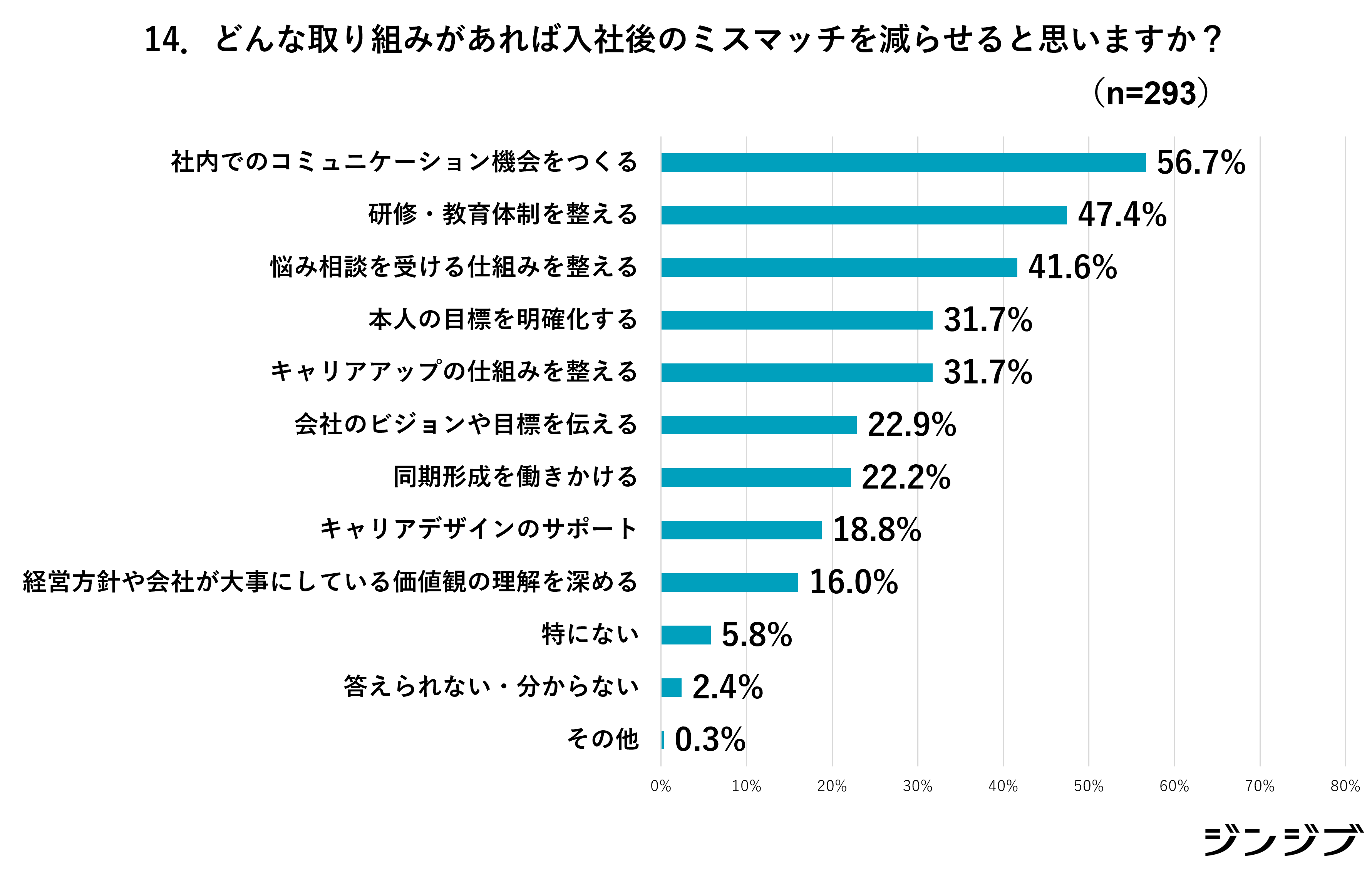 14.どんな取り組みがあれば入社後のミスマッチを減らせると思いますか? (n=293)