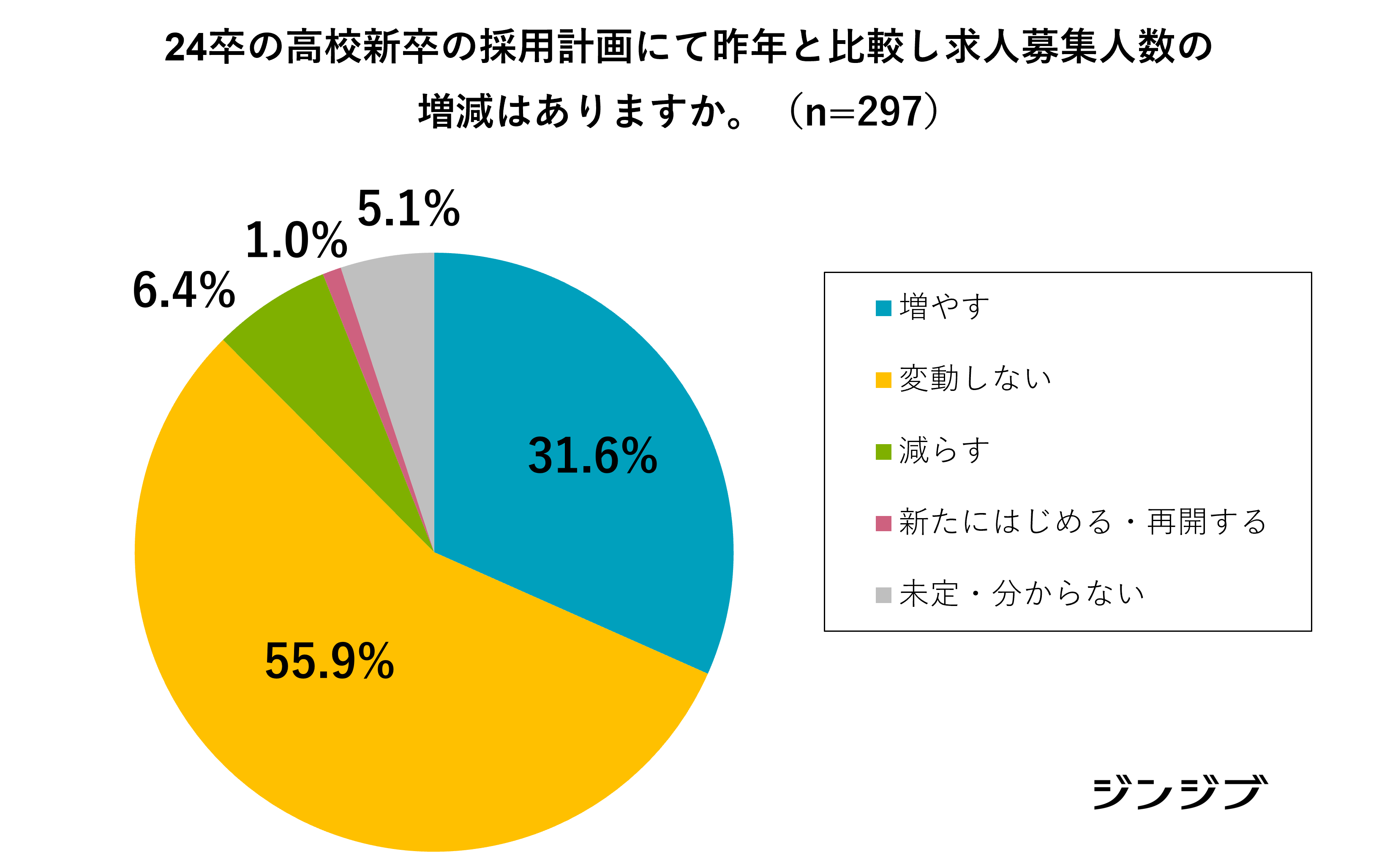 24卒高卒採用の募集人数「増やす」「変動なし」「新たに始める・再開する」が88.5%。